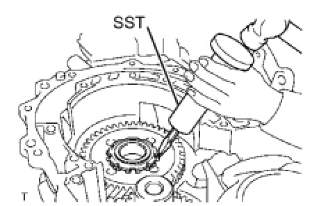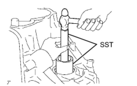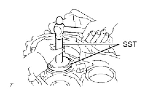 (a) Using SST and a hammer, install the counter drive gear bearing outer race LH to the transaxle case.