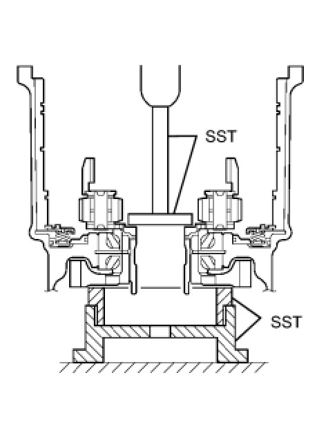 (b) Using SST, a press and a screwdriver, install the snap ring.