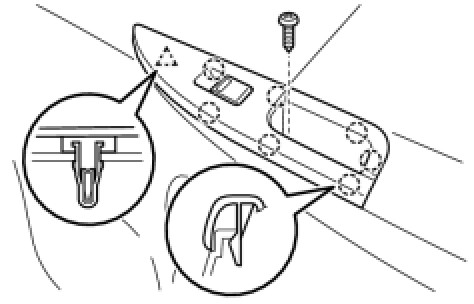 (a) Engage the 2 claws and install the rear door outside handle rear pad.