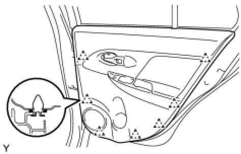 (c) Engage the 7 clips and install the rear door trim board sub-assembly.
