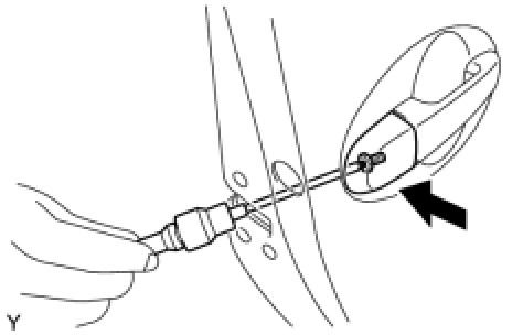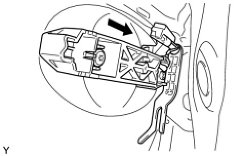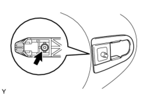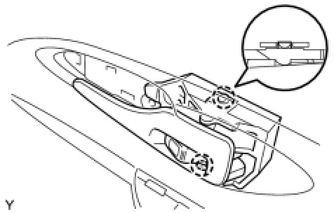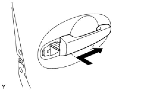 (a) Install the rear door outside handle assembly by pushing it in the direction indicated by the arrow mark shown in the illustration.