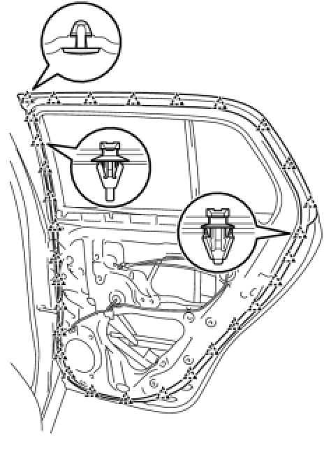 (a) Engage the 30 clips and install the rear door weatherstrip.