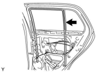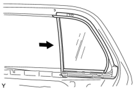 (a) Slide the rear door quarter window weatherstrip and the rear door quarter window glass, in the direction indicated by the arrow in the illustration, to install them.