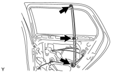 (a) Install the rear door window division bar sub-assembly with the 2 bolts and screw.