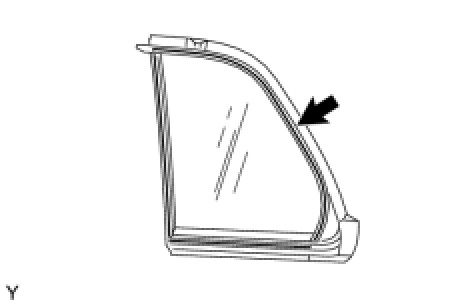 (a) Install the rear door quarter window glass onto the rear door quarter window weatherstrip.