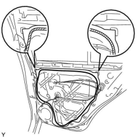 (a) Apply butyl tape to the door panel, then install a new rear door service hole cover as shown in the illustration.