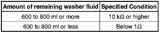If the result is not as specified, replace the washer level warning switch.