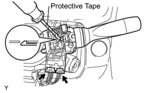 (b) Using a screwdriver with its tip wrapped in protective tape, disengage the claw and remove the wiper switch.