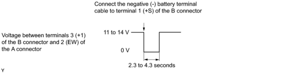 (1) Connect the positive (+) voltmeter terminal to terminal 3 (+1) of the B connector and the negative (-) voltmeter terminal to terminal 2 (EW) of the A connector.