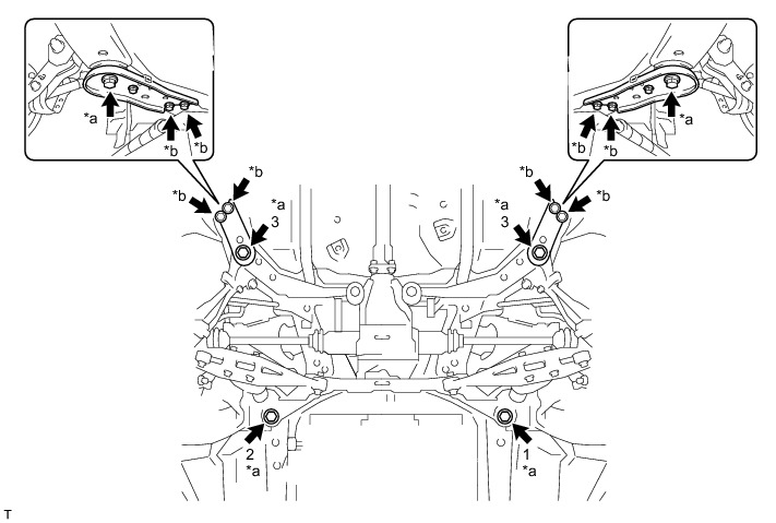 * Make sure to secure the rear suspension member sub-assembly to prevent it from dropping.