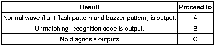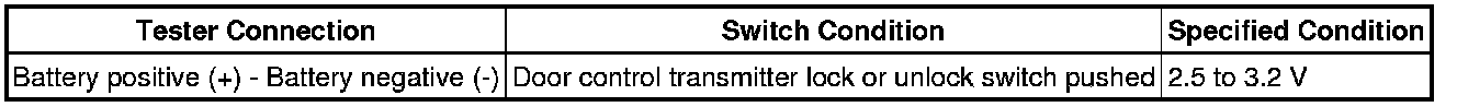 (a) Inspect the diagnostic outputs when the door control transmitter module set sub-assembly switch is held down. The diagnostic outputs can be checked by the flash patterns of the interior lights and the buzzer patterns of the wireless door lock buzzer.