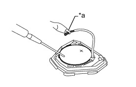 (a) Remove the battery from the door control transmitter module that does not operate. Attach a lead wire (0.6 mm (0.0236 in.)) or less in diameter including wire sheath) with tape or equivalent to the negative terminal Replacement.