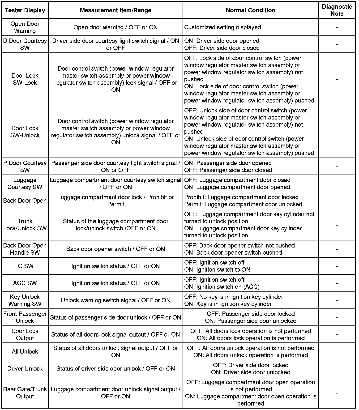 Body Electrical / Main Body / Data List.