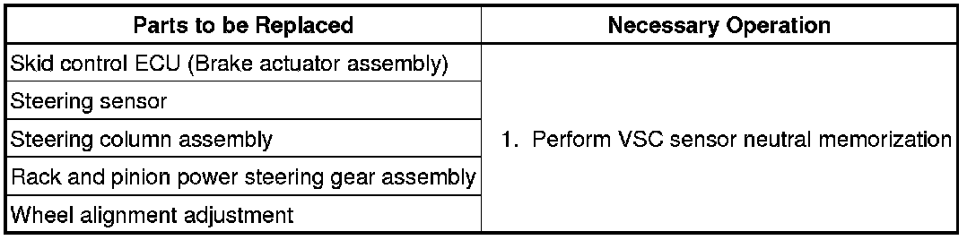 When VSC sensor neutral memorization is performed, the yaw rate and acceleration sensor and the steering sensor zero point calibration are performed at the same time.