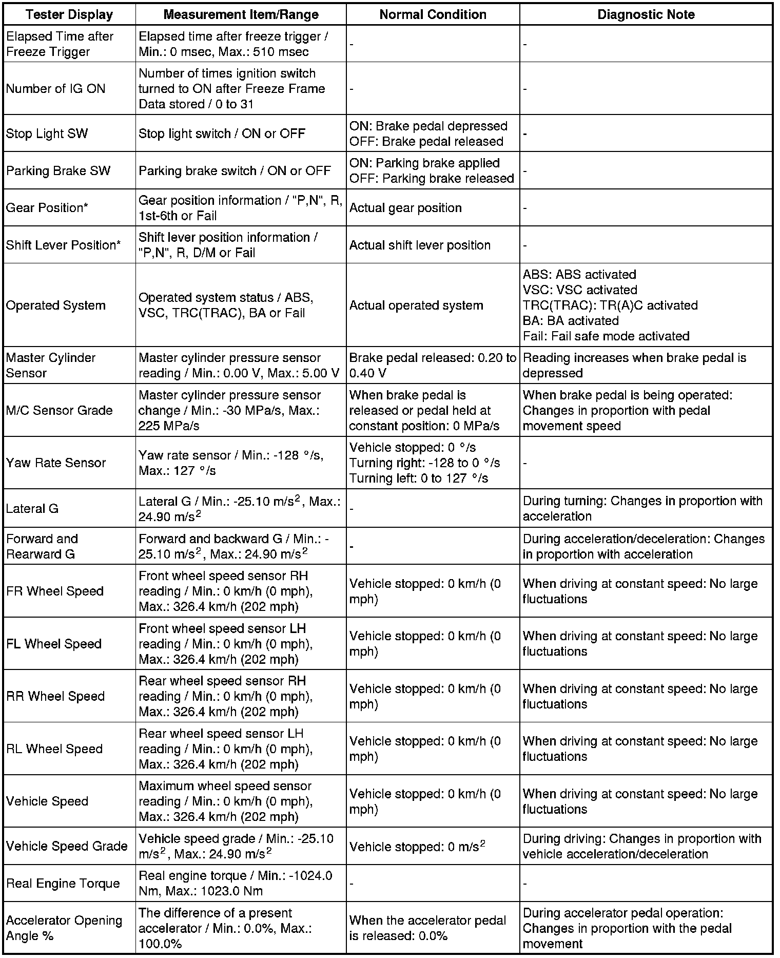 BRAKE CONTROL / DYNAMIC CONTROL SYSTEMS: VEHICLE STABILITY CONTROL SYSTEM: FREEZE FRAME DATA; 2013 MY FR-S [03/2012 -]