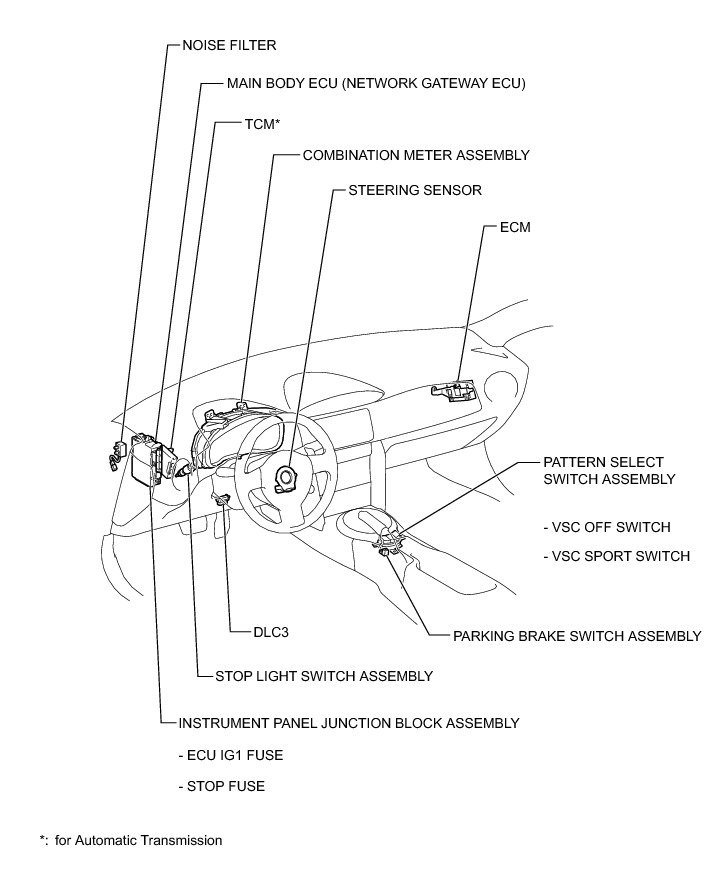 BRAKE CONTROL / DYNAMIC CONTROL SYSTEMS: VEHICLE STABILITY CONTROL SYSTEM: PARTS LOCATION; 2013 MY FR-S [03/2012 -]