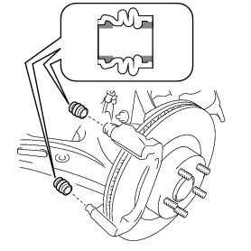 (a) Apply a light layer of lithium soap base glycol grease to the inner face of the 2 new front disc brake cylinder slide bushes as shown in the illustration.
