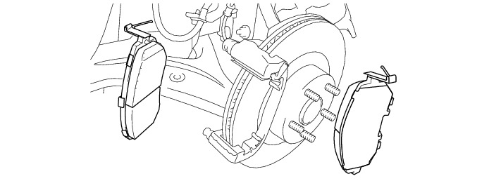 (1) Install the front disc brake pads to the carrier.