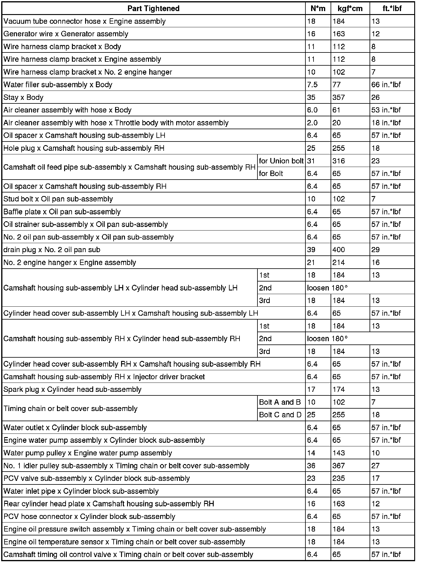 SPECIFICATIONS: FA20 ENGINE MECHANICAL: TORQUE SPECIFICATIONS; 2013 MY FR-S [03/2012 -]