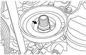 (a) Using a 24mm deep socket wrench, remove the oil filter union.
