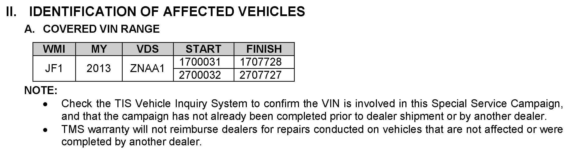 II. Identification of Affected Vehicles
