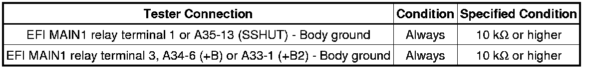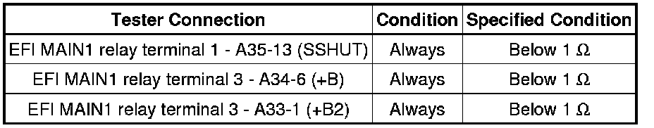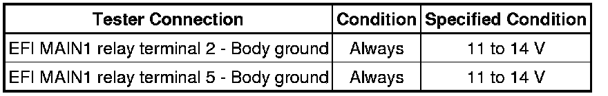 (a) Inspect the EFI MAIN1 relay Testing and Inspection.