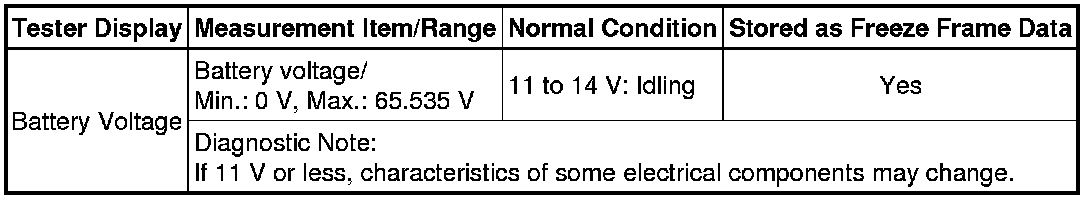 Normal Condition: If no conditions are specifically stated for "idling", the shift lever should be in P, N or neutral, the A/C switch should be off and all accessory switches should be off.