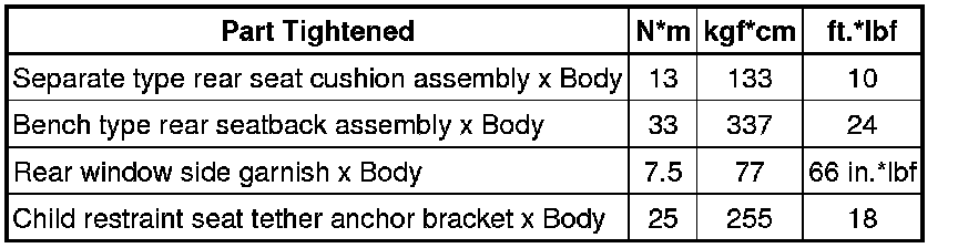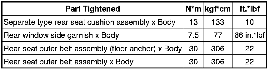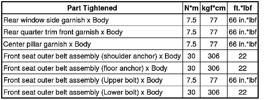 SPECIFICATIONS: SEAT BELT: TORQUE SPECIFICATIONS; 2013 MY FR-S [03/2012 -]