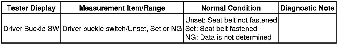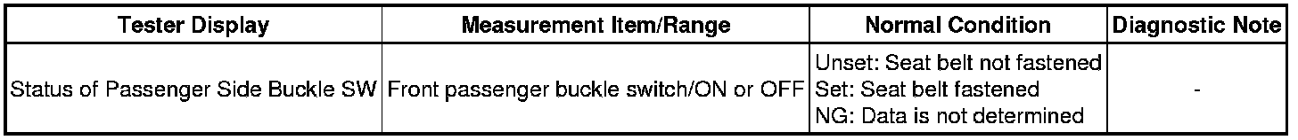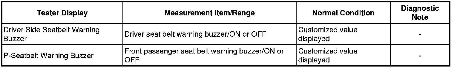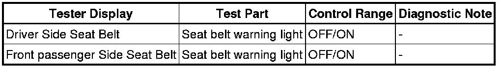 SEAT BELT: SEAT BELT WARNING SYSTEM: DATA LIST / ACTIVE TEST; 2013 MY FR-S [03/2012 -]