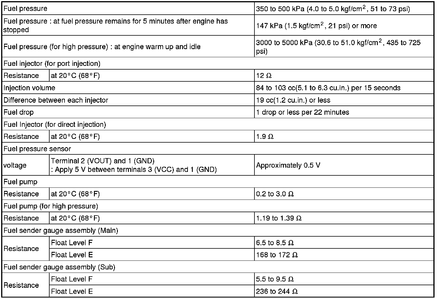 SPECIFICATIONS: FA20 FUEL: SERVICE DATA; 2013 MY FR-S [03/2012 -]
