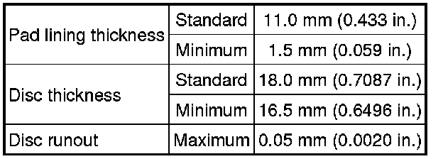 SPECIFICATIONS: BRAKE (REAR): SERVICE DATA; 2013 MY FR-S [03/2012 -]