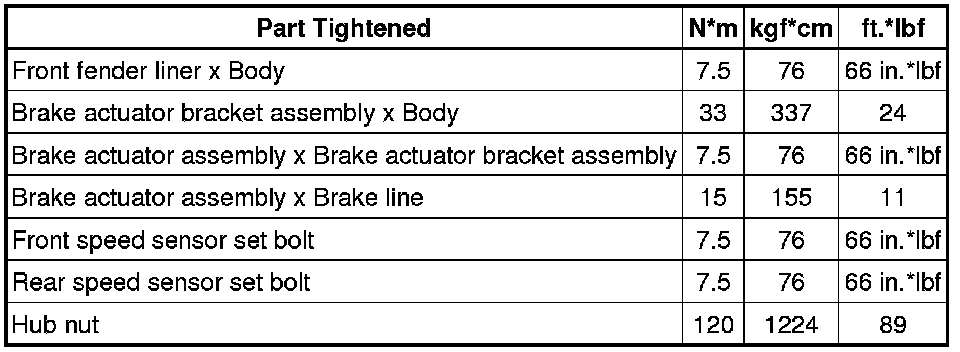 SPECIFICATIONS: BRAKE CONTROL / DYNAMIC CONTROL SYSTEMS: TORQUE SPECIFICATIONS; 2013 MY FR-S [03/2012 -]