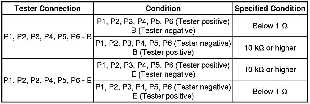 (1) Measure the resistance according to the value(s) in the table below.