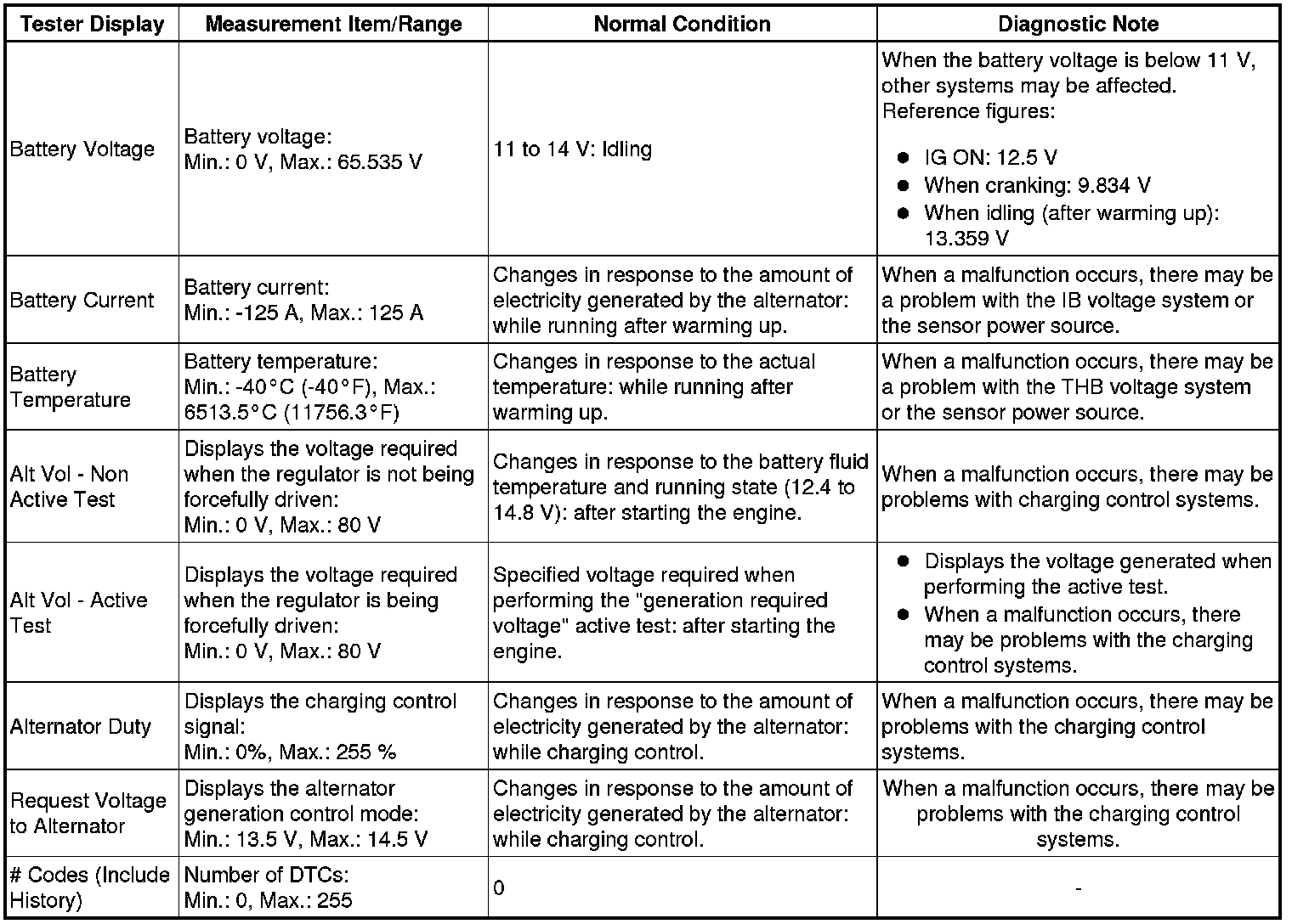 FA20 BATTERY / CHARGING: CHARGING SYSTEM: DATA LIST / ACTIVE TEST; 2013 MY FR-S [03/2012 -]