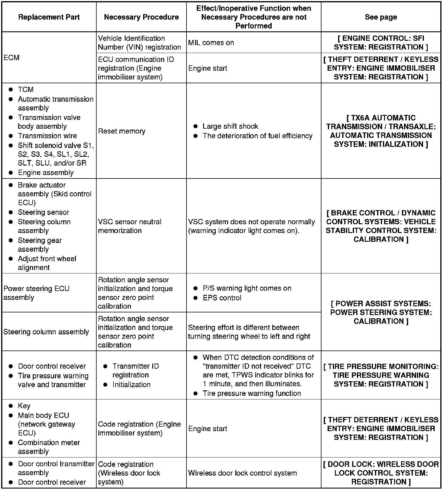 PROCEDURES NECESSARY WHEN ECU OR OTHER PARTS ARE REPLACED