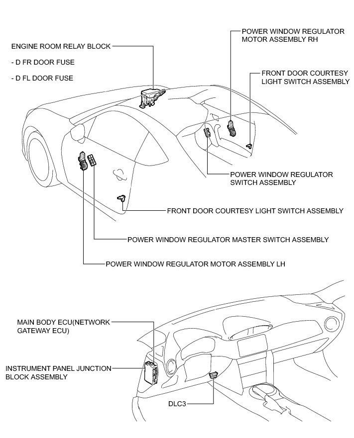 WINDOW / GLASS: POWER WINDOW CONTROL SYSTEM: PARTS LOCATION; 2013 MY FR-S [03/2012 -]