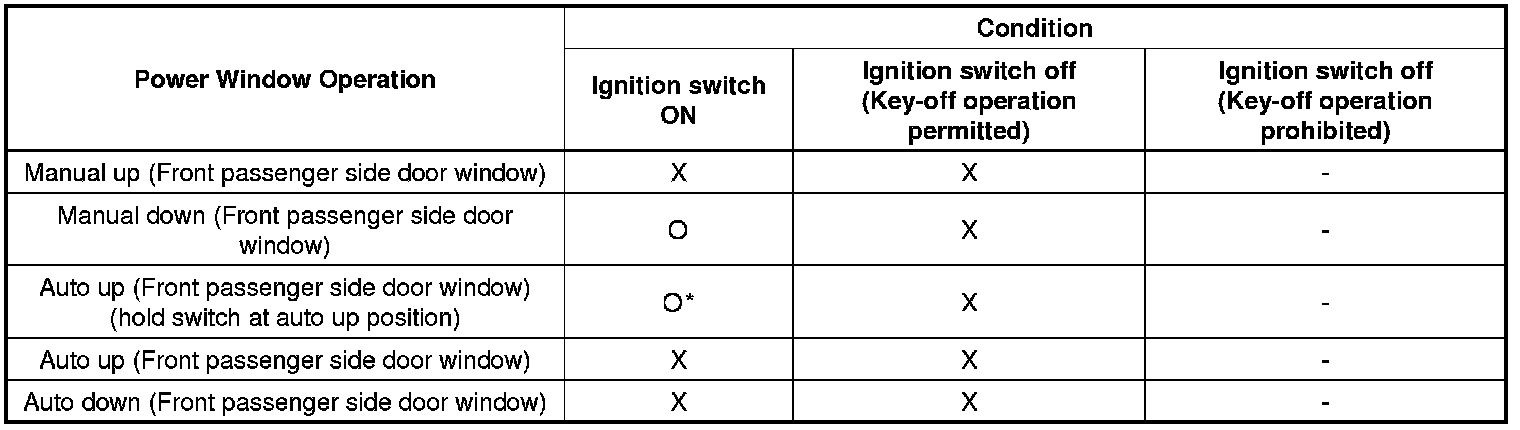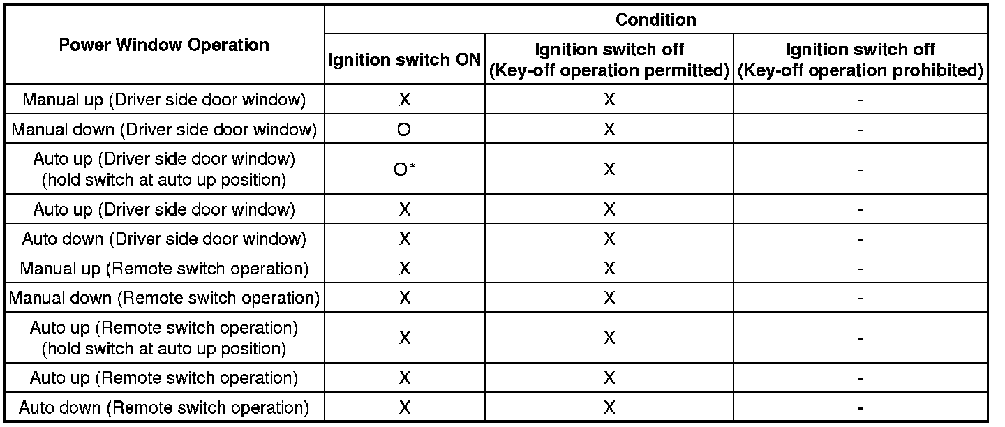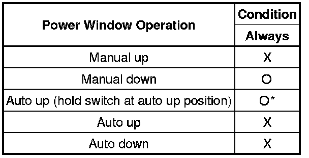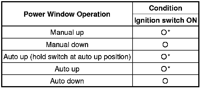 * *: Operates in pull up the power window switch to the auto up position without jam protection