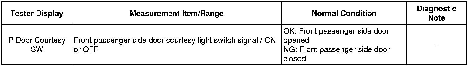 2. READ VALUE USING TECHSTREAM (DOOR COURTESY SWITCH)