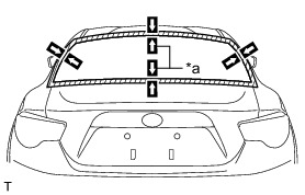 * There are 2 back window glass stoppers on the back window glass, as shown in the illustration. Be careful not to damage the back window glass when cutting off the adhesive.