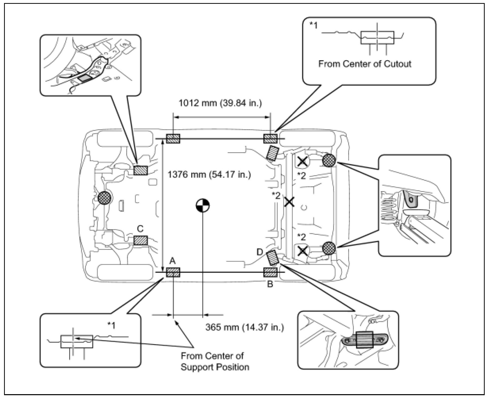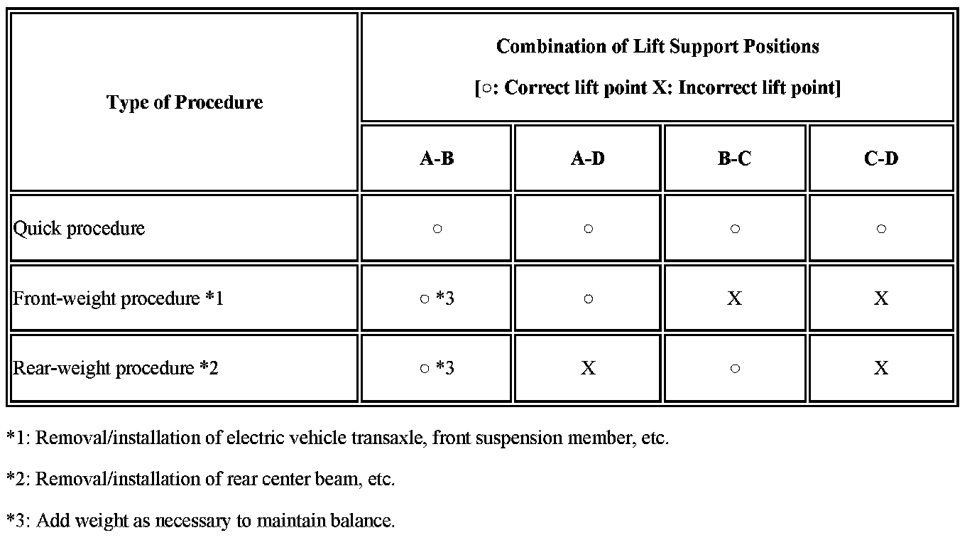 Use the correct lift support positions, which vary by the type of service procedure performed.