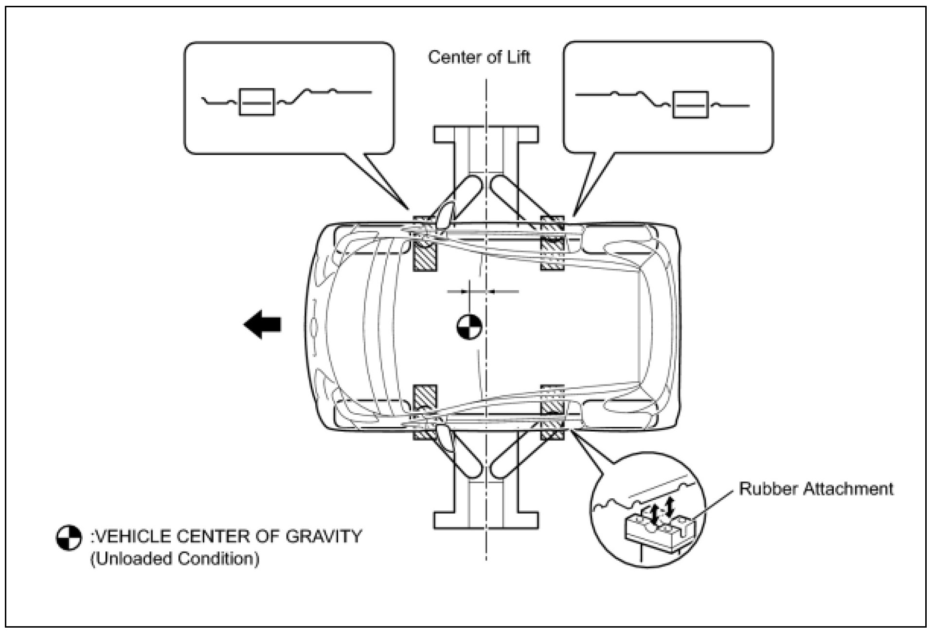 c. Position the vehicle so that its center of gravity is centered on the lift (length of "L" in the illustration should be as short as possible).