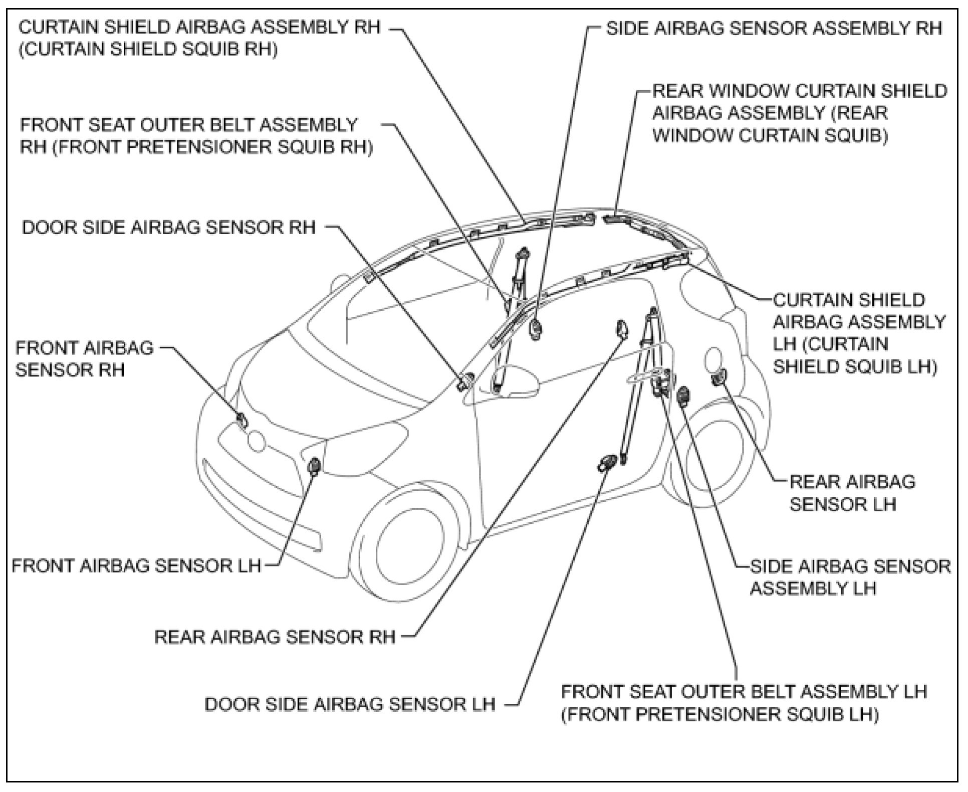 c. Do not allow the front airbag sensors, door side airbag sensors, side airbag sensors, rear airbag sensors, seat position airbag sensor or airbag ECU assembly to become heated to high temperatures.