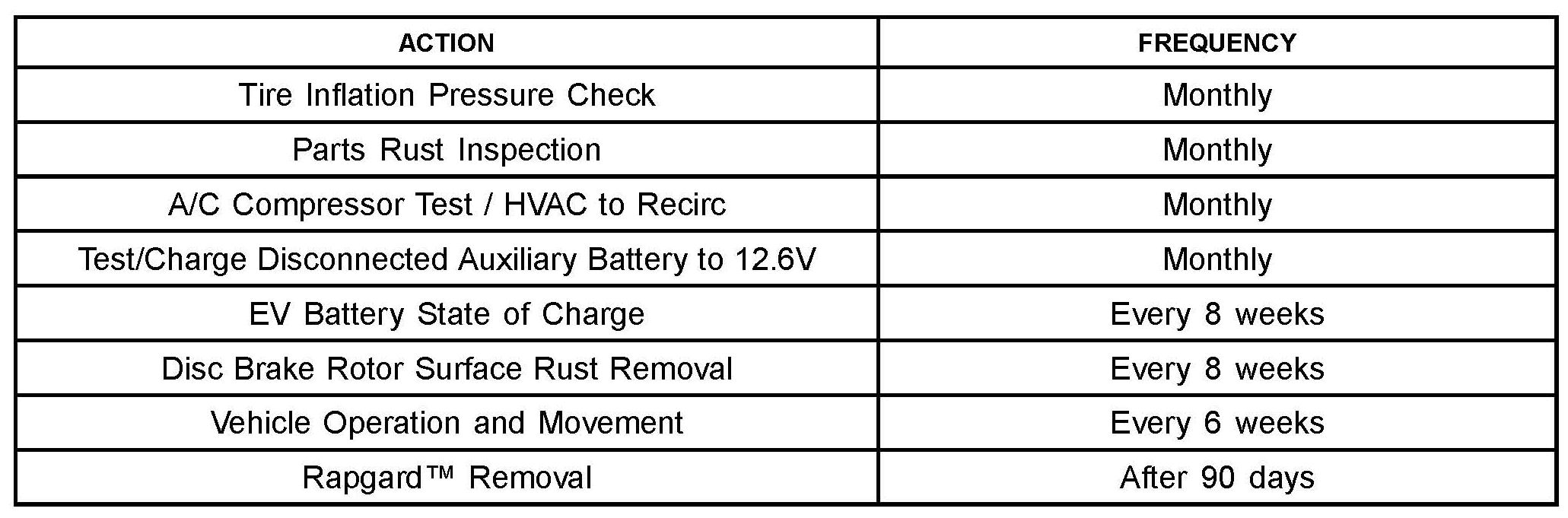 Long-term or off-site storage requires special care to keep vehicles factory fresh and ready for delivery. The following guidelines should be performed to minimize vehicle component/part degradation due to extended vehicle storage conditions. Long-term storage can affect a vehicle's systems and components. Any problems that are found should be corrected immediately.