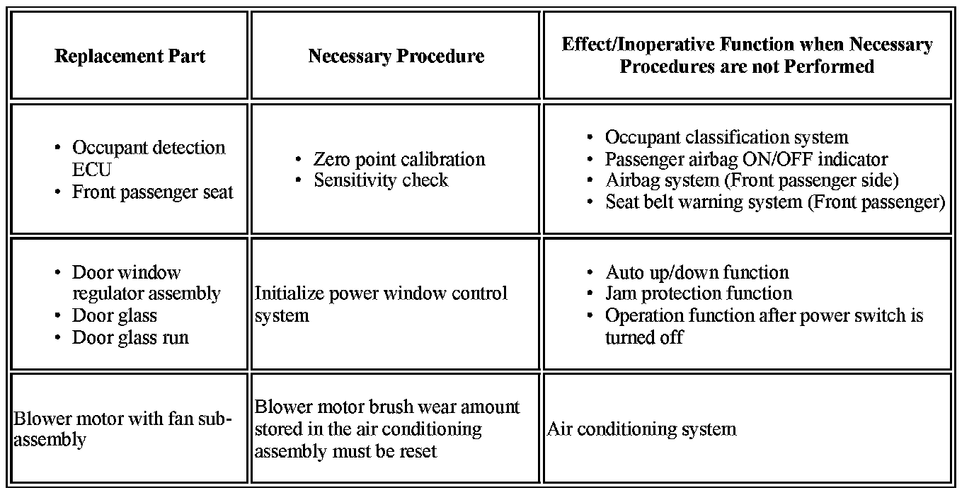 PROCEDURES NECESSARY WHEN ECU OR OTHER PARTS ARE REPLACED