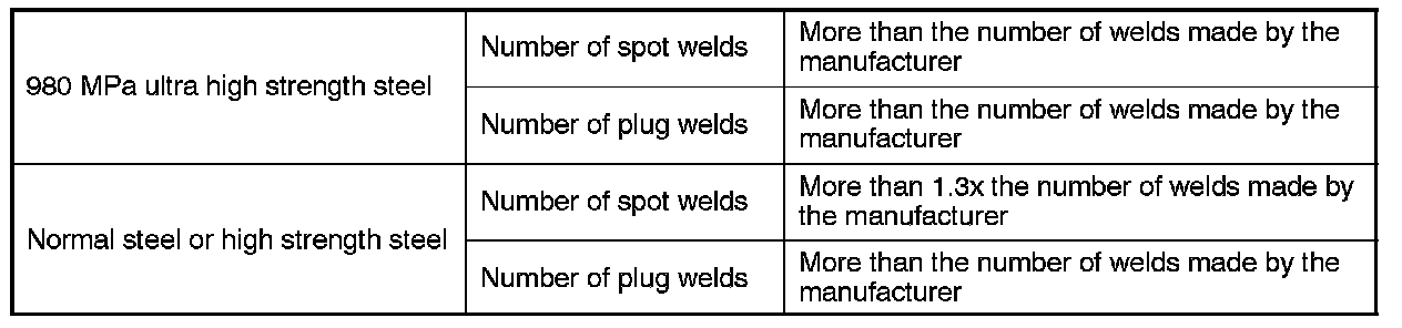 1. Follow the welding conditions below when welding ultra high strength steel to assure sufficient weld strength.