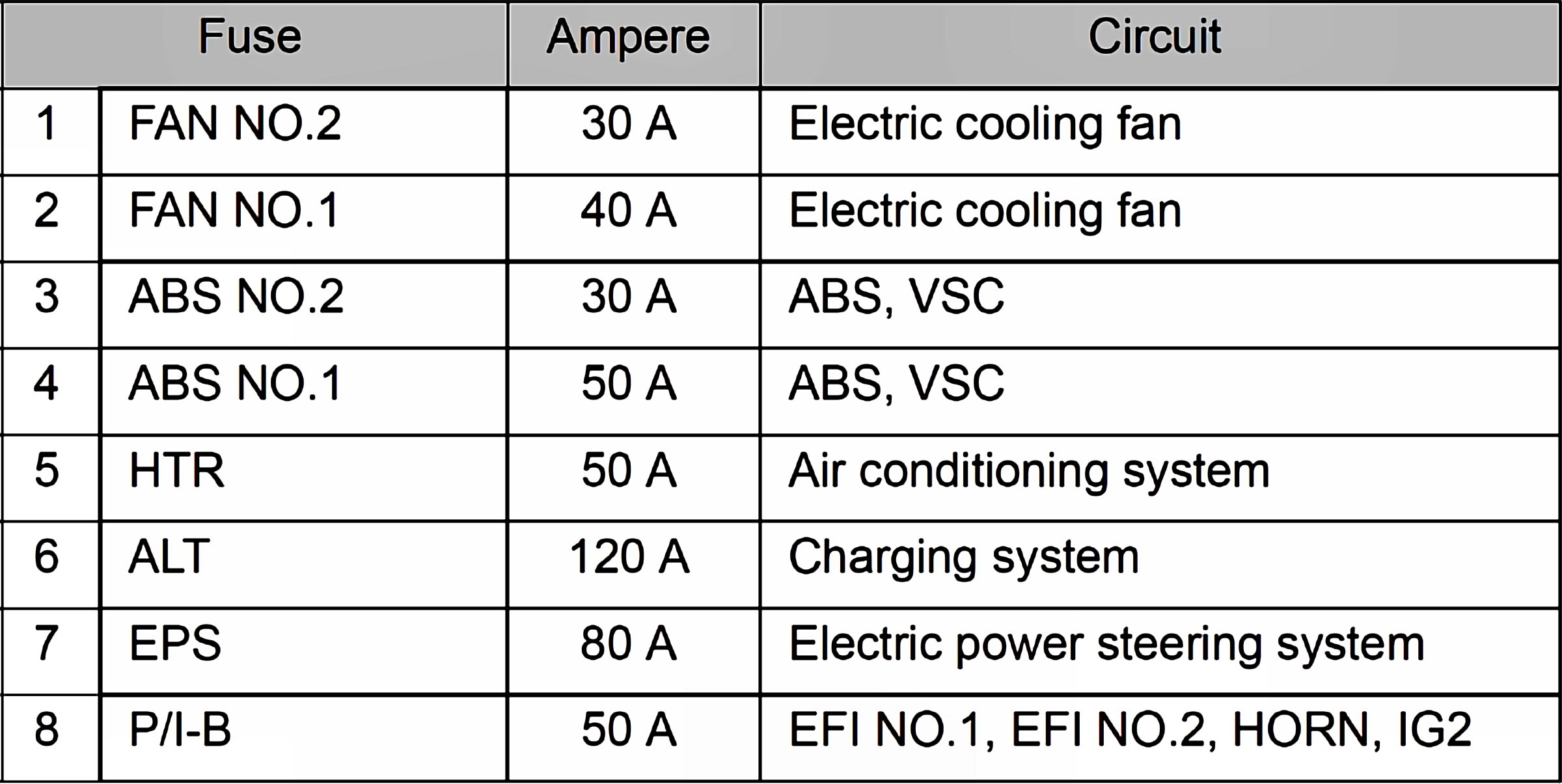 Fuses 1-8: