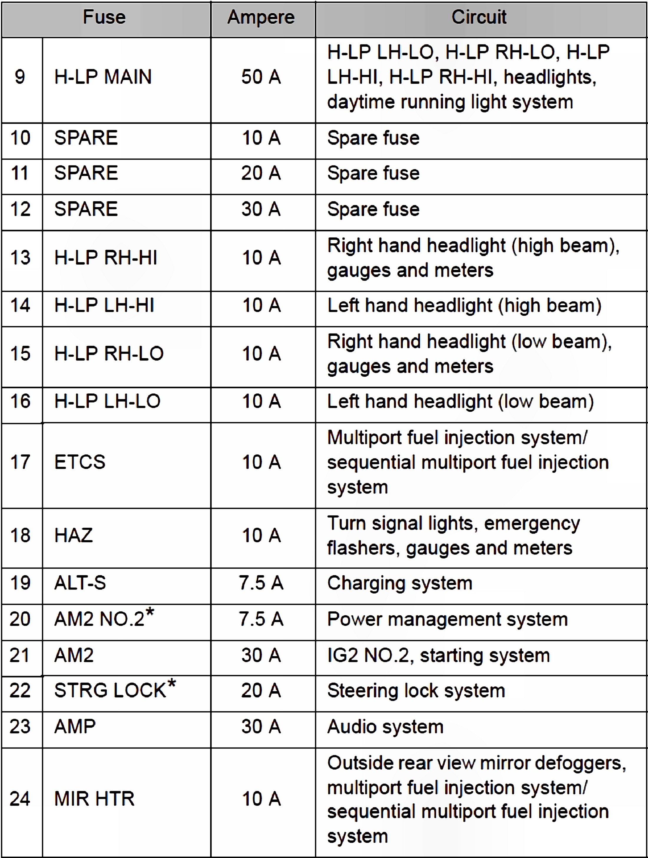 Fuses 9-24: