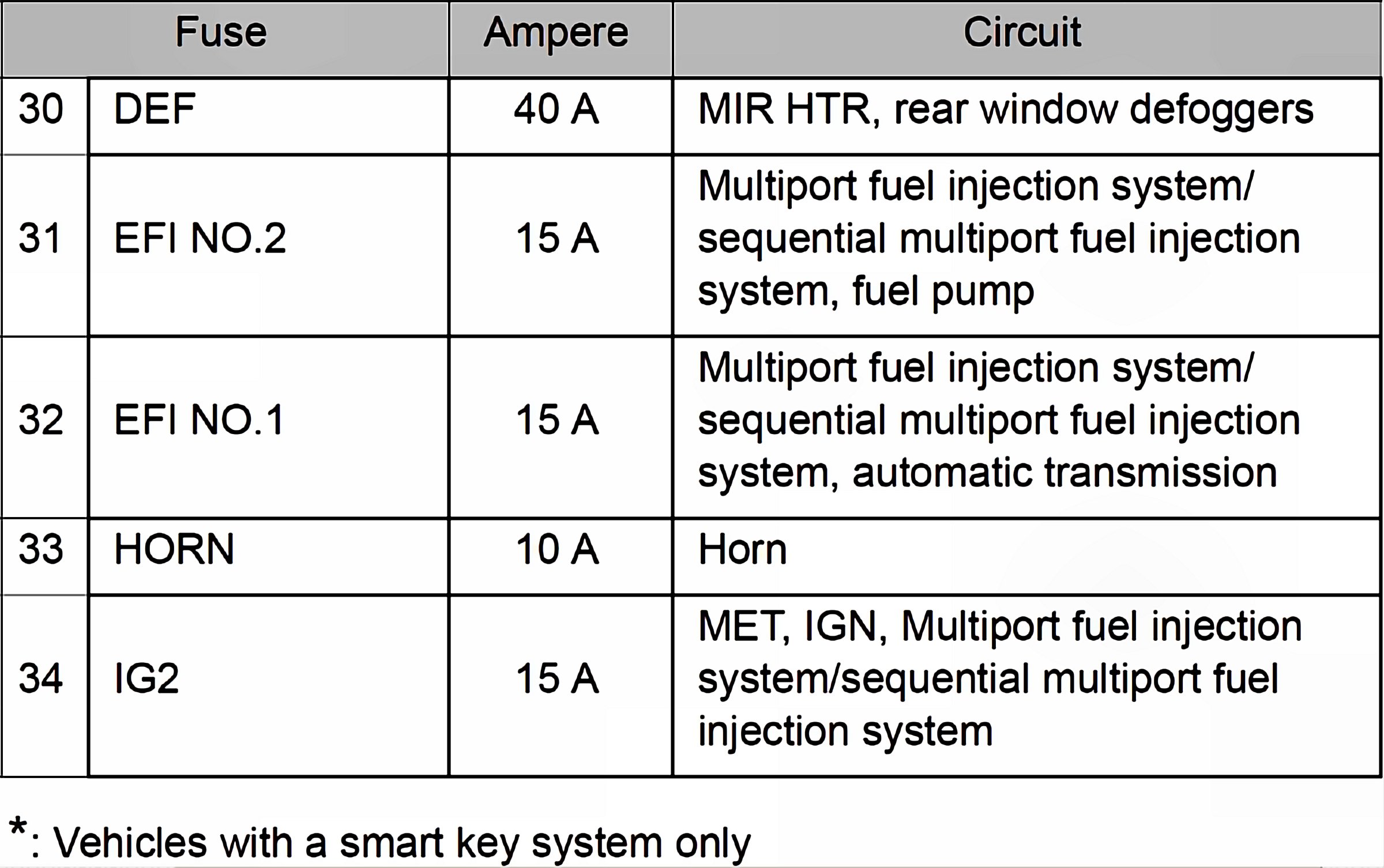 Fuses 30-34: