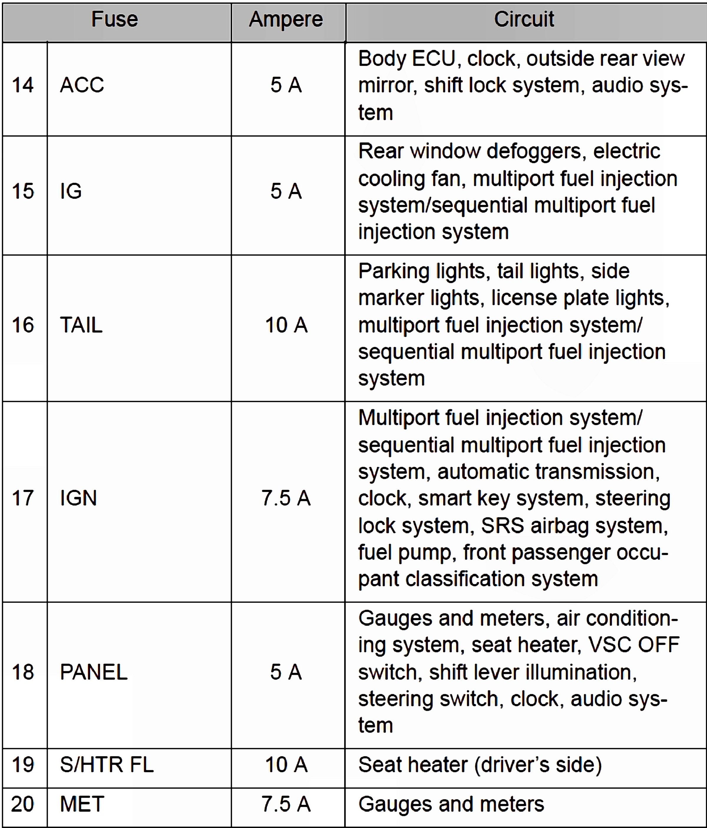 Fuses 14-20:
