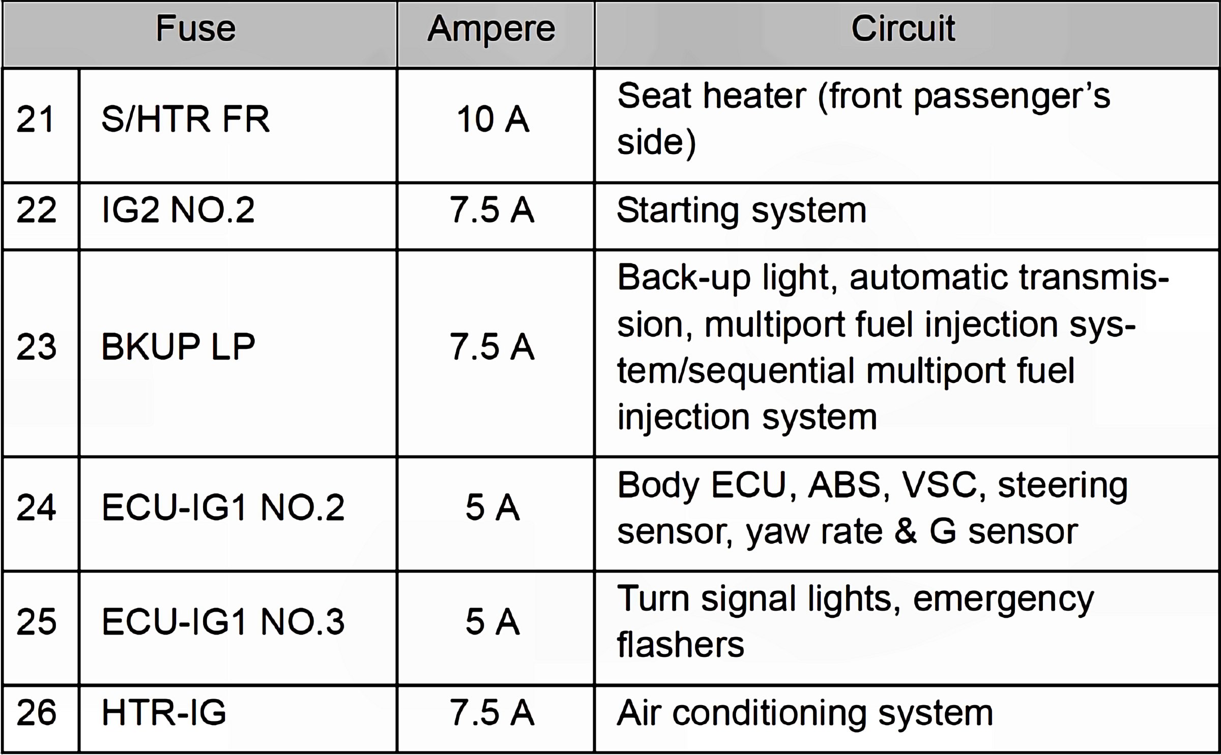 Fuses 21-26:
